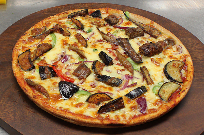 Chef’s Special Sauce, Mozzarella Cheese, Roasted Eggplant, Bell Pepper & Tomatoes